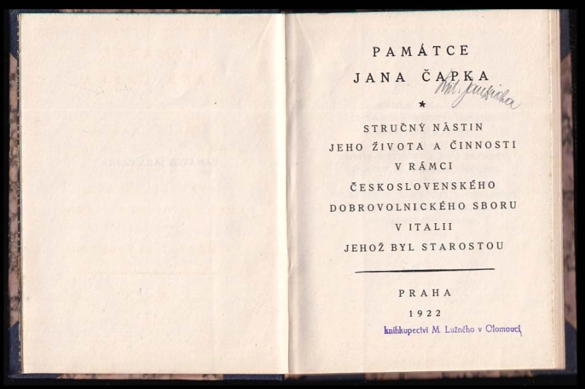 1922 | Nakladatelství vydal Čin, tiskové a nakladatelské družstvo Československých legionářů