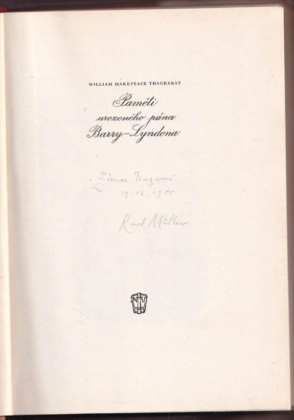 Paměti urozeného pána Barry-Lyndona DEDIKACE KAREL MÜLLER