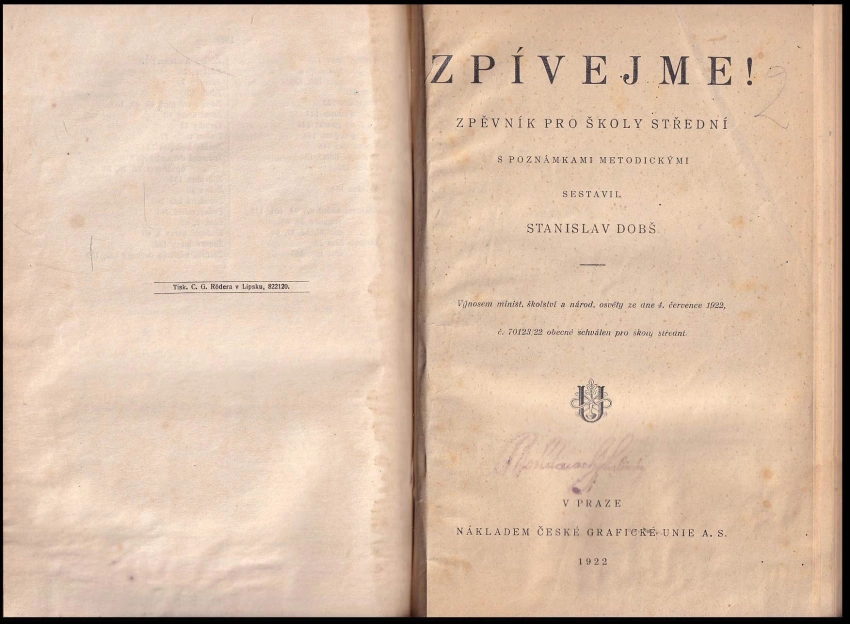 Zpívejme!, zpěvník pro školy střední s poznámkam... 1922 (171 s.)Populárně všeobecná nauka o hudbě, pro žáky a přátele hudebního umění... 1920 (195 s.)