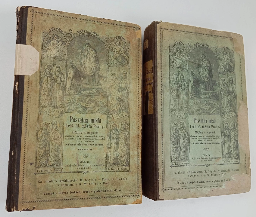 Posvátná místa král. hl. města Prahy, dějiny a popsání chrámů, kaplí, posvá... 1883 Svazek I (vi, 479, 12 nečíslovaných , xiii , 1 nečíslovaný list obrazových příloh)Posvátná místa král. hl. města Prahy, dějiny a popsání chrámů, kaplí, posvá... 1884 Svazek II (539, xiii s., [1] s. obr. příl)