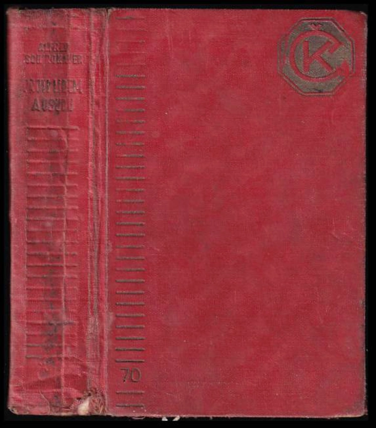 poškozený hřbet, vazba lehce povolená, pár stránek volně, razítko, stránky s flíčky