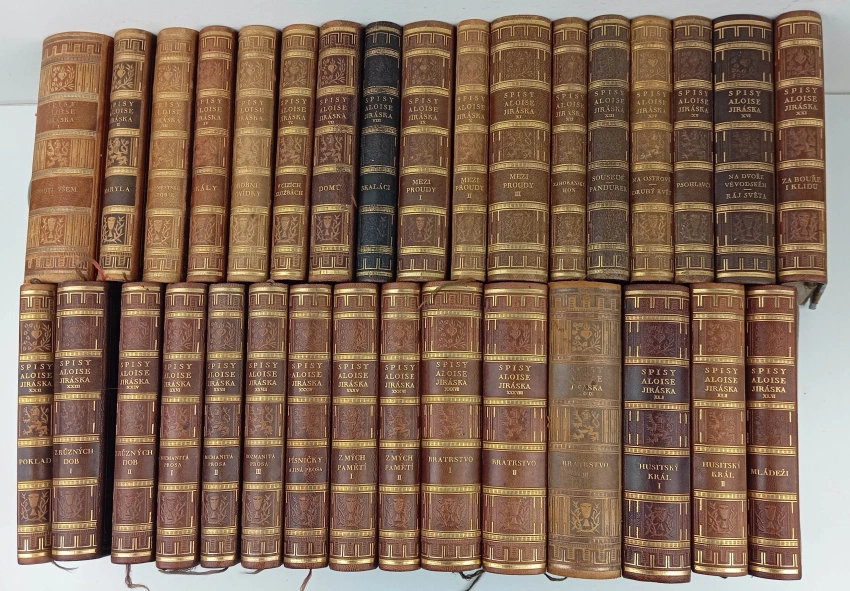 Sebrané spisy Aloisa Jiráska: Díl 1-16, 21-28, 34-39, 41-42, 46 (Proti všem +Maryla a jiné povídky +Maloměstské historie +Skály +Drobné povídky a obrázky +V cizích službách +Domů a jiné obrázky +Skaláci+Mezi proudy I-III + Zahořanský hon a jiné +Sousedé; Pandurek+Na ostrově; Druhý květ+Psohlavci+Na dvoře vévodském ;Ráj světa ;Dva historické obrazy+Za bouře i klidu +Poklad +Z různých dob I-II+Rozmanitá prosa I-III+Písničky a jiná prosa+Z mých pamětí I-II+Bratrstvo I-III+Husitský král I-II +Mládeži)