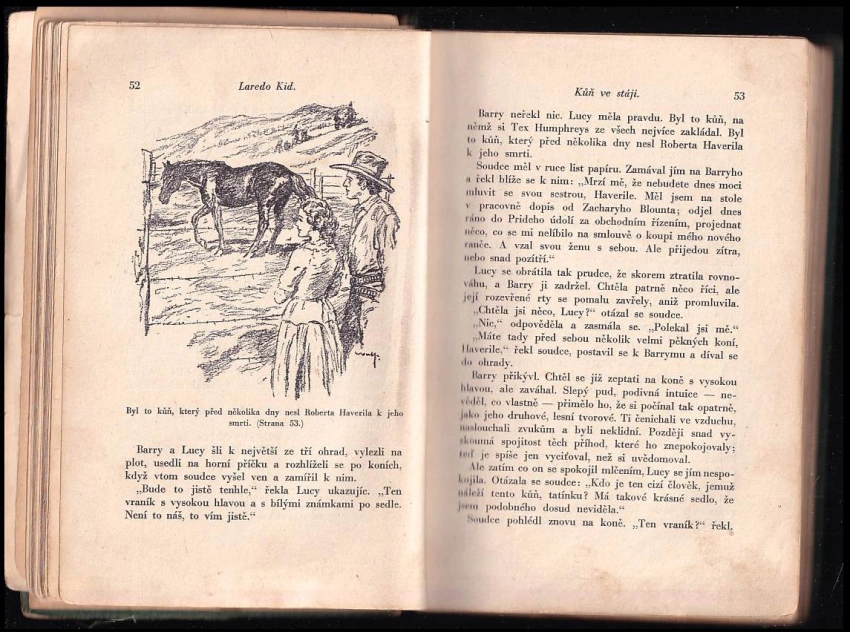 titulní desky téměř volně, Hřbet prasklý, první stránky volně, zbytek knižního bloku drží v celku