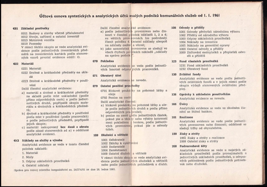 Směrnice k účtové osnově pro malé podniky komunálních služeb : platí od 1. ledna 1961