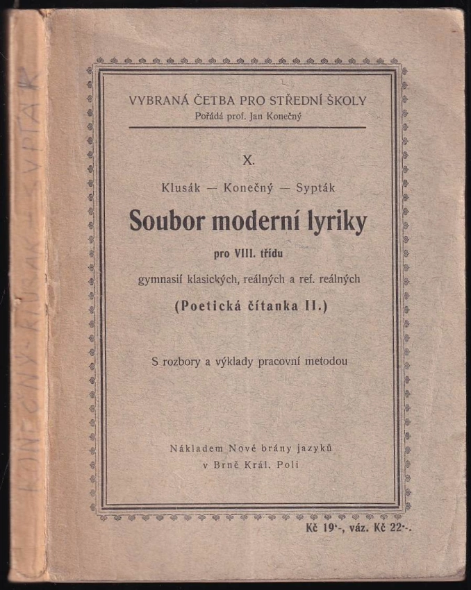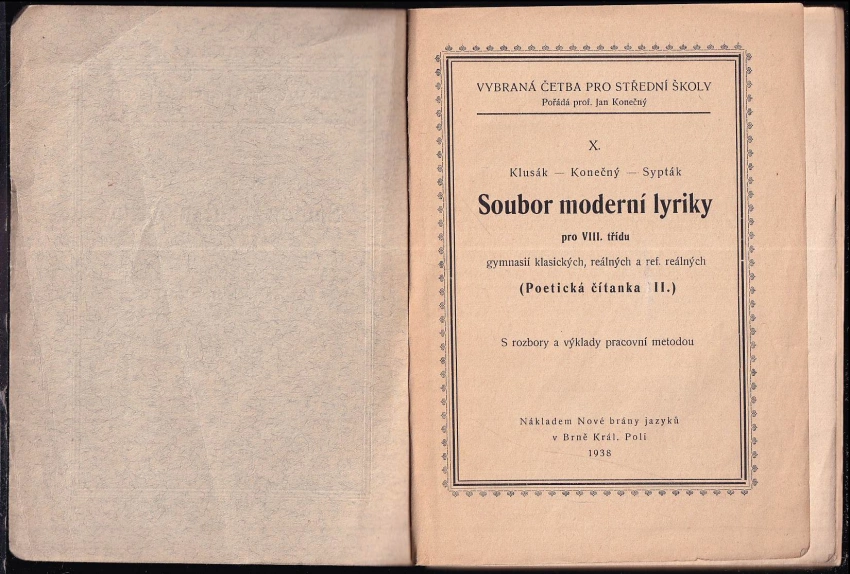 Soubor moderní lyriky pro VIII. třídu gymnasií klasických, reálných a ref. reálných