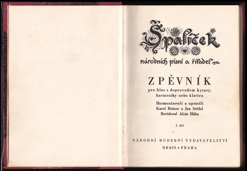 Špalíček národních písní a říkadel, první díl : zpěvník pro 1 hlas s dopr... 1951 (123 s. : il. + příl, 2. vyd.)Špalíček národních písní a říkadel, Zpěvník pro hlas s doprovodem kytary,... 1951 2. díl (156 s., obr., noty, 2. vyd.)