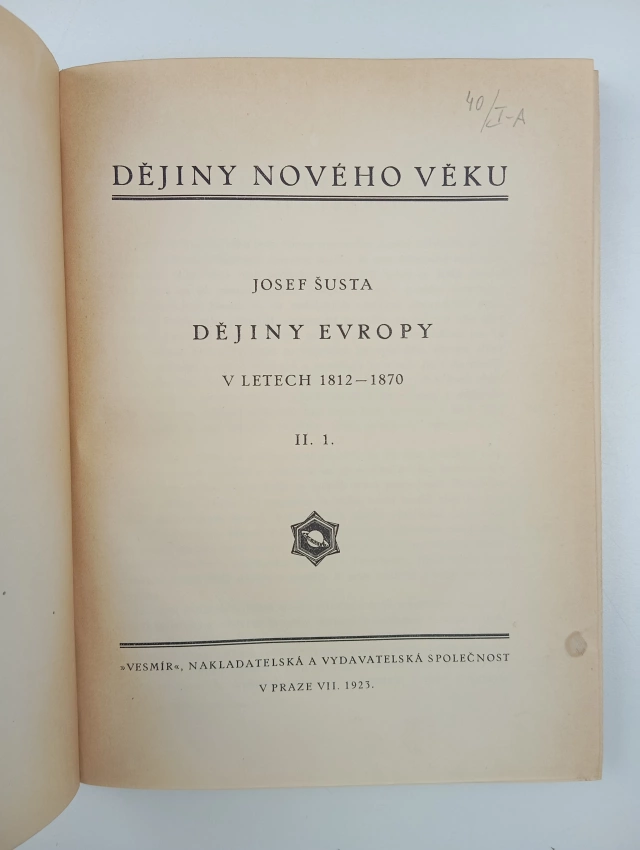 Dějiny Evropy v letech 1812-1870 1924 I (xi, 305, 2. vyd.)Dějiny Evropy v letech 1812-1870 1923 II. 1 (176 s.)
