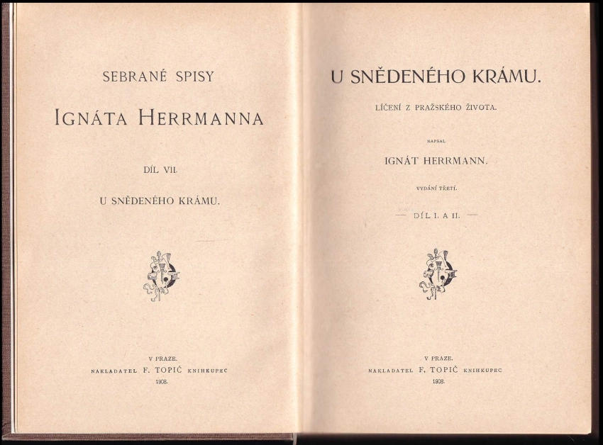 U snědeného krámu, líčení z pražského života 1908 [Sv. 1] (284 s., 3. vyd.)U snědeného krámu, líčení pražského života 1909 [Sv. 2] (346 s., 3. vyd.)
