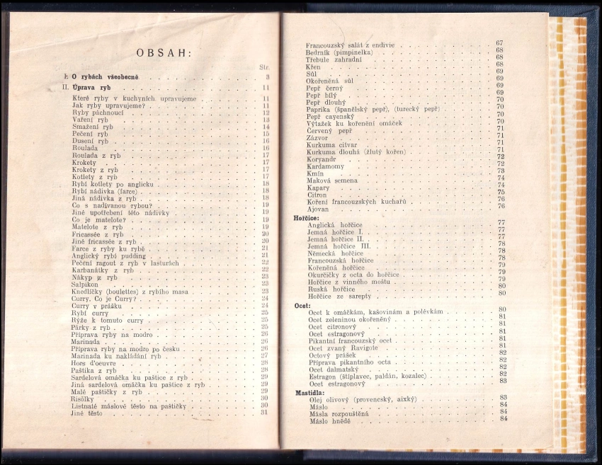 : jich zabíjení, vaření, dusení, pečení, smažení, nadívání, uzení, marinování, příprava na rošti i na rožni, v huspenině, v rosolu, na modro, na smetaně a pod. : rybí kotlety, krokety, karbanátky, pirohy, paštiky, risolky, roulady, saláty, polévky, párky, výtažky, fricassée, knedlíčky, puddingy, ragouts, filets atd