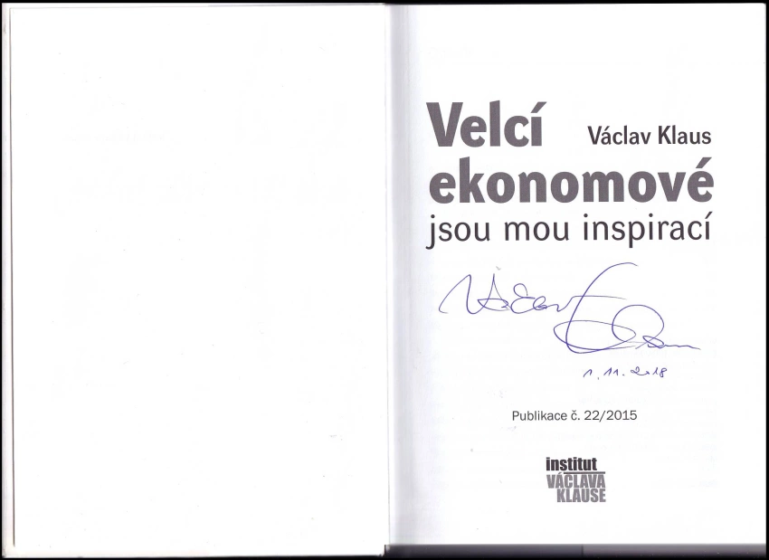 Velcí ekonomové jsou mou inspirací PODPIS VÁCLAV KLAUS
