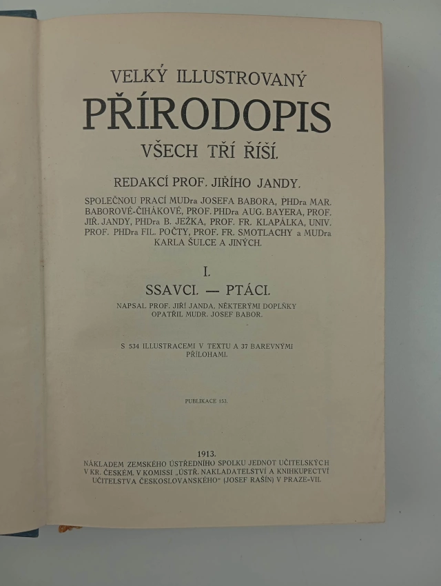 Velký illustrovaný přírodopis všech tří řísí, Savci - ptáci 1913 1 (XLVII, 588)Velký ilustrovaný přírodopis všech tří říší, Plazové - obojživelníci - ryby 1914 II (864 s.)