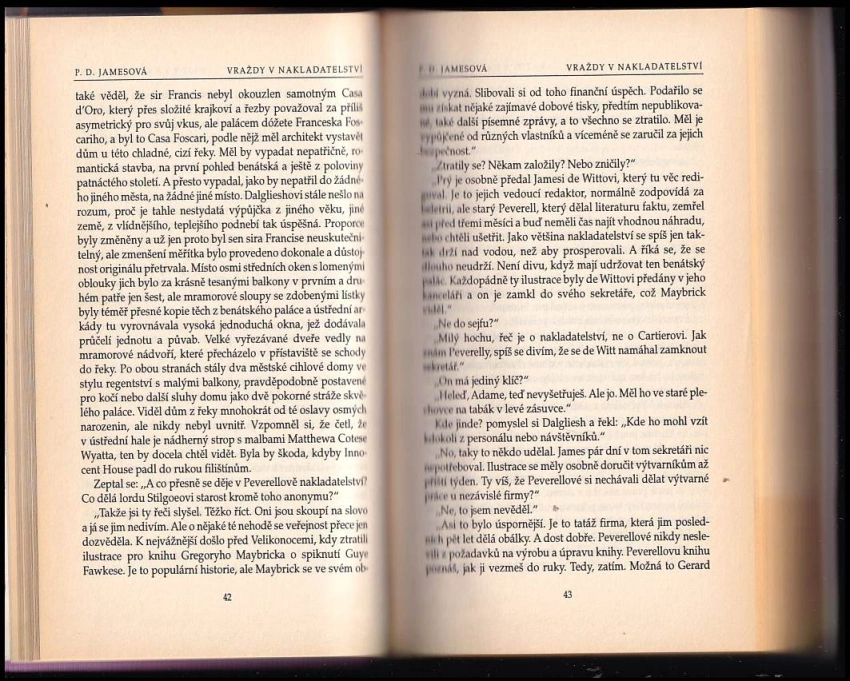 Phyllis Dorothy James, baronka z Holland Parku, OBE , známá jako P. D. Jamesová, byla anglická spisovatelka detektivních příběhů a doživotní členka britské Sněmovny lordů za Konzervativní stranu. Proslavila se hlavně díky detektivním románům s postavou detektiva a básníka Adama Dalglieshe. Narodila se v Oxfordu v rodině daňového inspektora Sidneyho Jamese. Navštěvovala školu v Ludlow a později střední dívčí školu v Cambridgi. Po střední škole začala v Cambridgi pracovat na daňovém úřadě a poté v divadle. Tam se také seznámila se svým budoucím manželem, Connorem Bantry Whitem, se kterým má dvě dcery. Jejich manželství bylo poznamenáno tím, že se u Connora Whita po návratu z války rozvinula psychická porucha a většinu života musel strávit v psychiatrických ústavech. Jamesová rodinu finančně podporovala tím, že pracovala jako úřednice, např. na ředitelství nemocnic. Po smrti svého manžela v roce 1964 začala pracovat na kriminalistickém oddělení ministerstva vnitra, kde zůstala až do odchodu do důchodu v roce 1979. Začala psát v polovině 50. let. První detektivní romány P.D. Jamesové se často odehrávají v prostředí britských státních institucí, jakými jsou zdravotnické a kriminalistické ústavy, jejichž prostředí Jamesová díky své práci dobře znala. Její pozdější romány se většinou odehrávají v uzavřených komunitách, např. v nakladatelství, teologické koleji, na ostrově nebo na soukromé klinice. Typickým znakem všech jejích detektivních románů je komplexní příběh, propracované postavy a posun od čistě detektivního románu k obecné fikci s realistickými prvky. Jamesová se nesoustředí jen na zápletku a odhalení zločince, ale klade důraz na charakteristiku postav, prostředí a na ničivé následky zločinu a jeho vliv na životy všech zúčastněných. Nejznámější část díla P.D. Jamesové tvoří série knih, jejichž hlavním hrdinou je Adam Dalgliesh. V dalších dvou románech je hlavní postavou majitelka detektivní kanceláře Cordelia Gr...