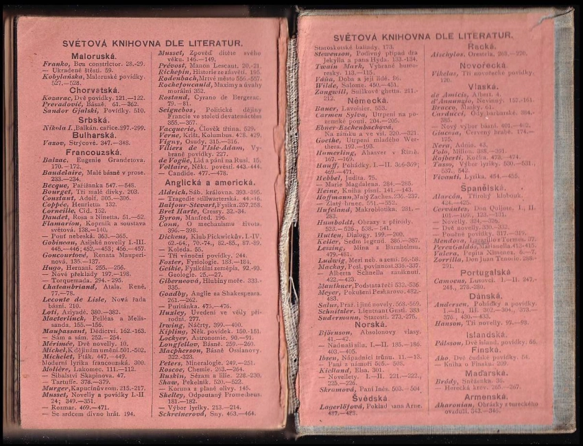 zkosený hřbet, vpisky propiskou, pár stránek volně, vazba povolená, vazba u předsádky prasklá