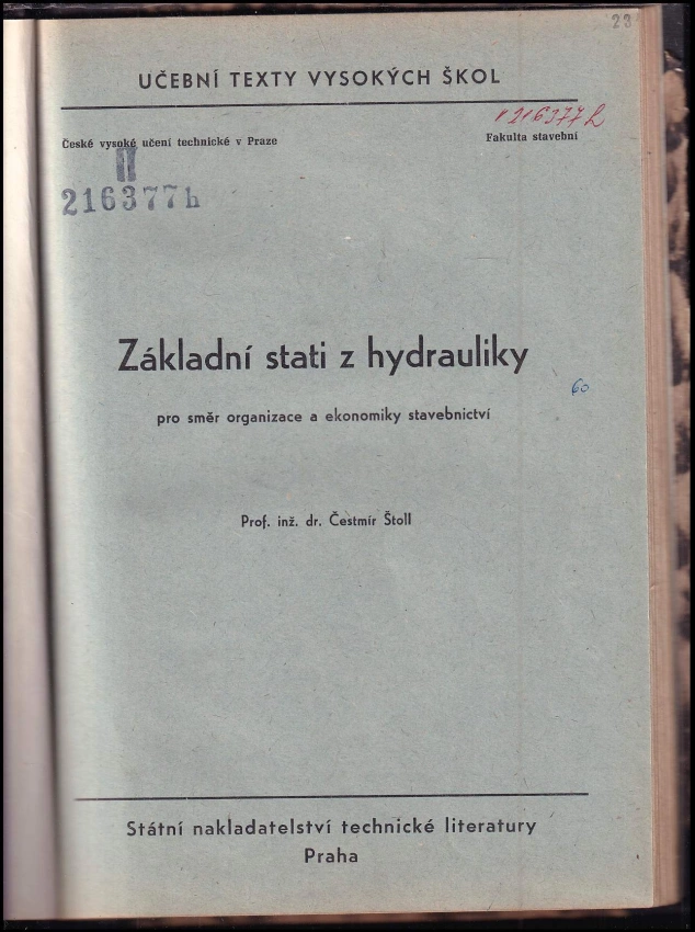 Základní stati z hydrauliky pro směr organizace a ekonomiky stavebnictví