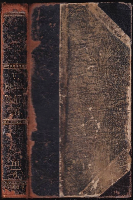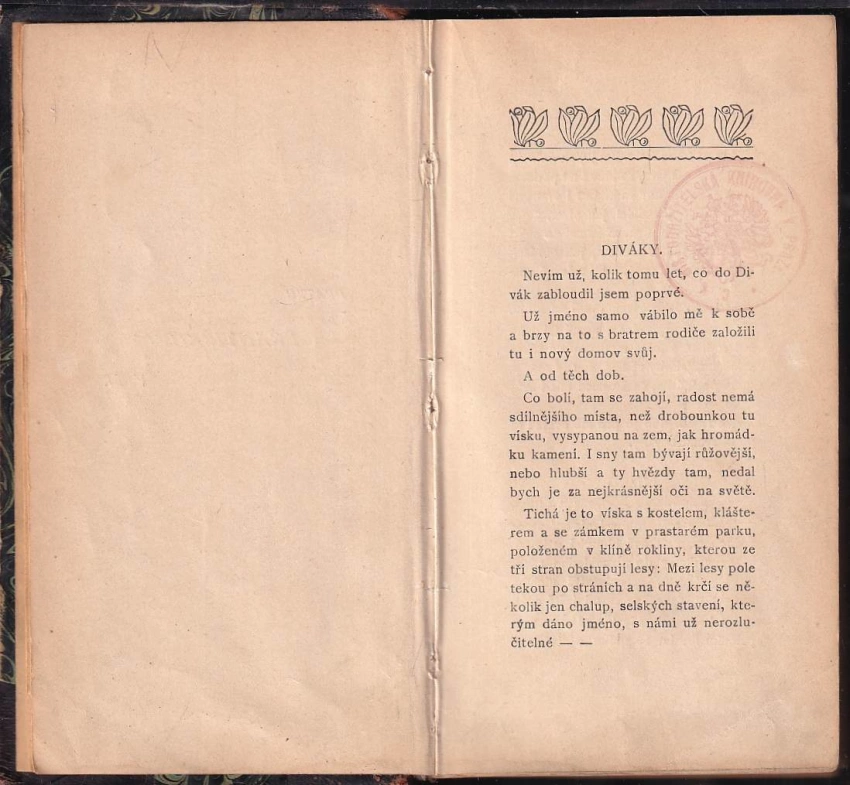 razítka z knihovny, stránky s flíčky, odřený hřbet, označení na předsádce