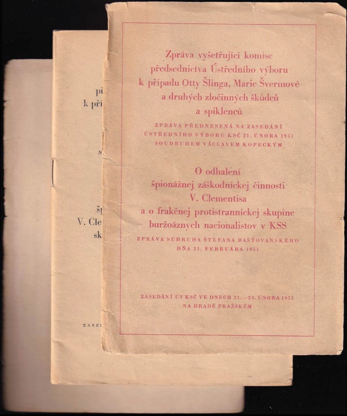 : zpráva přednesená na zasedání ÚV KSČ 21. února 1951 Václavem Kopeckým . O odhalení špionážnej záškodníckej činnosti V. Clementisa a o frakčnej protistrannickej skupine buržoáznych nacionalistov v KSS : zpráva Štefana Bašťovanského dňa 21. februára 1951