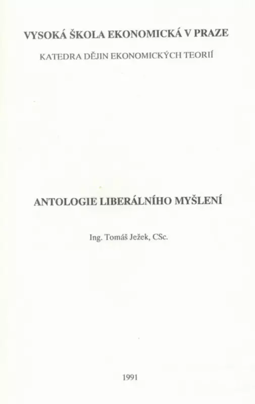 Tomáš Ježek: Antologie liberálního myšlení