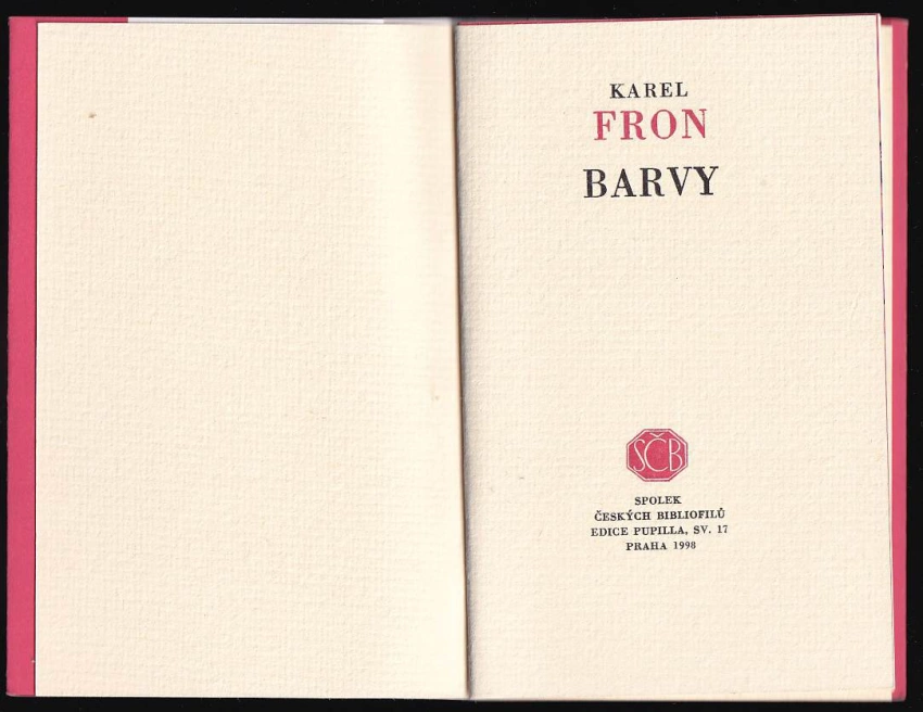 Karel Fron, Vladimír Suchánek: Barvy : nepublikované verše ; [dvoubarevnou perokresbou ilustroval Vladimír Suchánek]