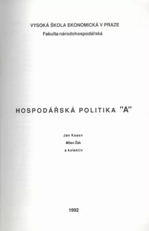 Milan Žák, Jan Kasan: Hospodářská politika A : [Díl] A