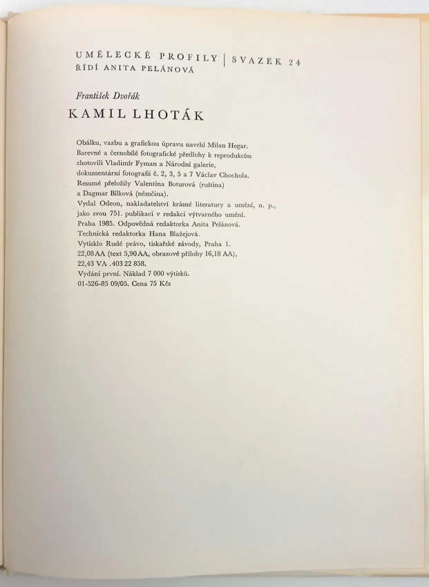 1965 Nakladatelství československých výtvarných umělců (35 s., 108 s. obr., 24 s. obr. příl, 1. vyd.) Pevná s obálkou Obsahuje přílohu/y