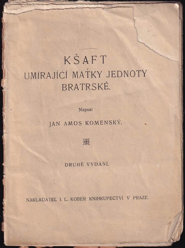 Kšaft umírající matky Jednoty bratské, kterýmž ( v národu svém a obzvláštnosti své dokonávající) svěřené sobě někdy od Pána Boha poklady mezi syny a dcery a dědice své rozděluje : Léta Páně 1650 J.A.K