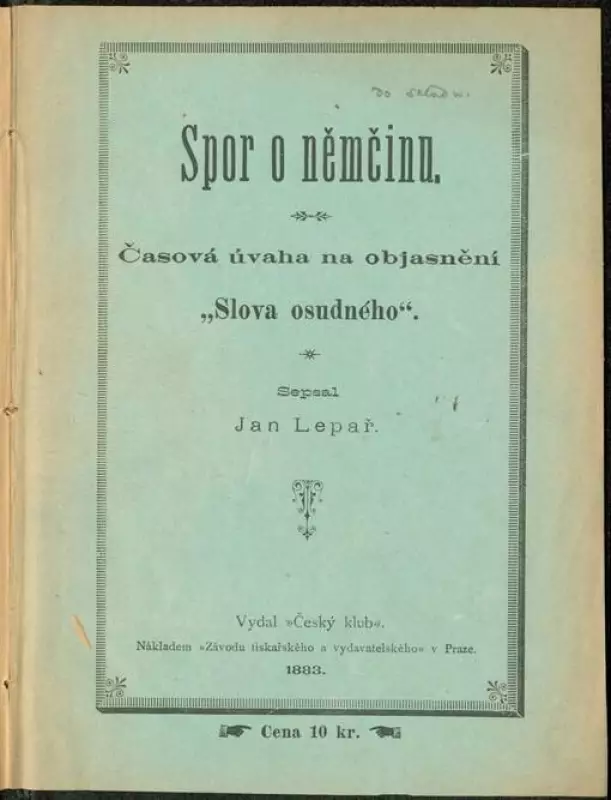 Jan Lepař: Spor o němčinu : časová úvaha na objasnění "Slova osudného"