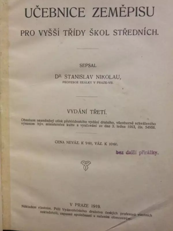 Stanislav Nikolau: Učebnice zeměpisu pro vyšší třídy škol středních