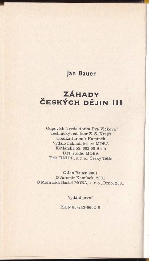 Jan Bauer: Záhady českých dějin : III