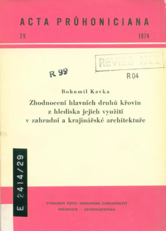 Bohumil Kavka: Zhodnocení hlavních druhů křovin z hlediska jejich využití v zahradní a krajinářské architektuře