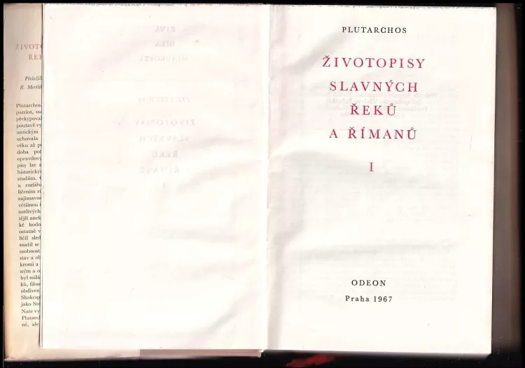 Životopisy slavných Řeků a Římanů I (834 s., 1. vyd.)Životopisy slavných Řeků a Římanů II (808, [32] s. obr. příl, 1. vyd.)
