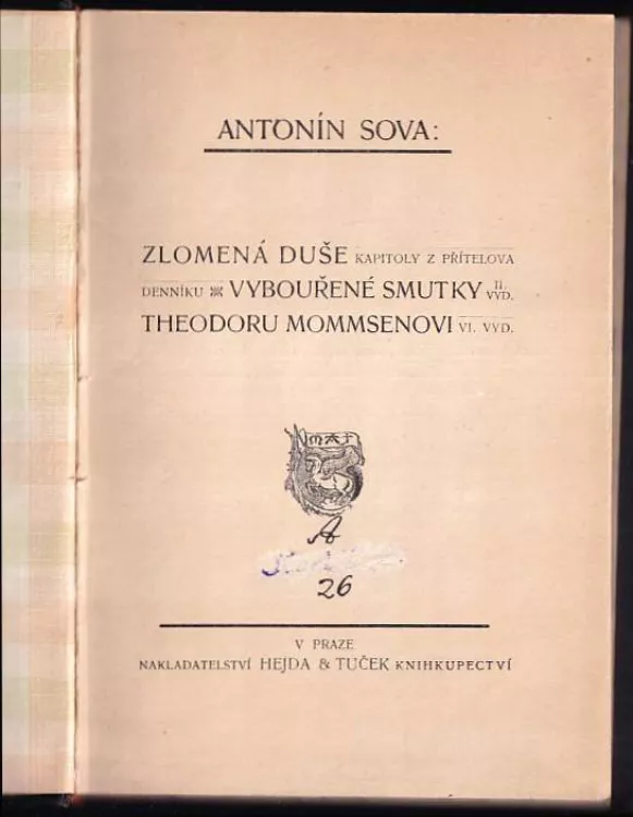 Antonín Sova: Zlomená duše : kapitoly z přítelova denníku ; Vybouřené smutky ; Theodoru Mommsenovi